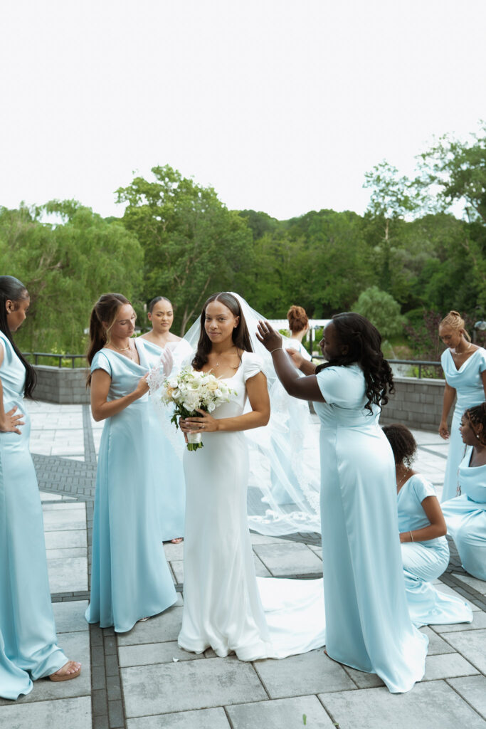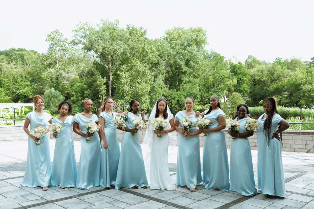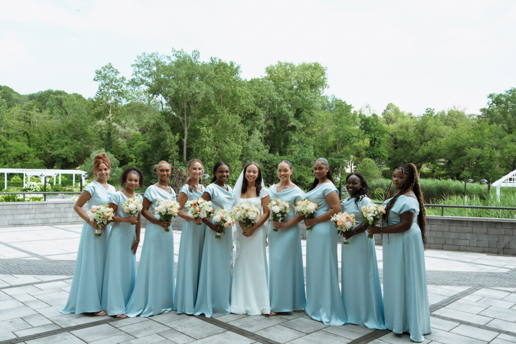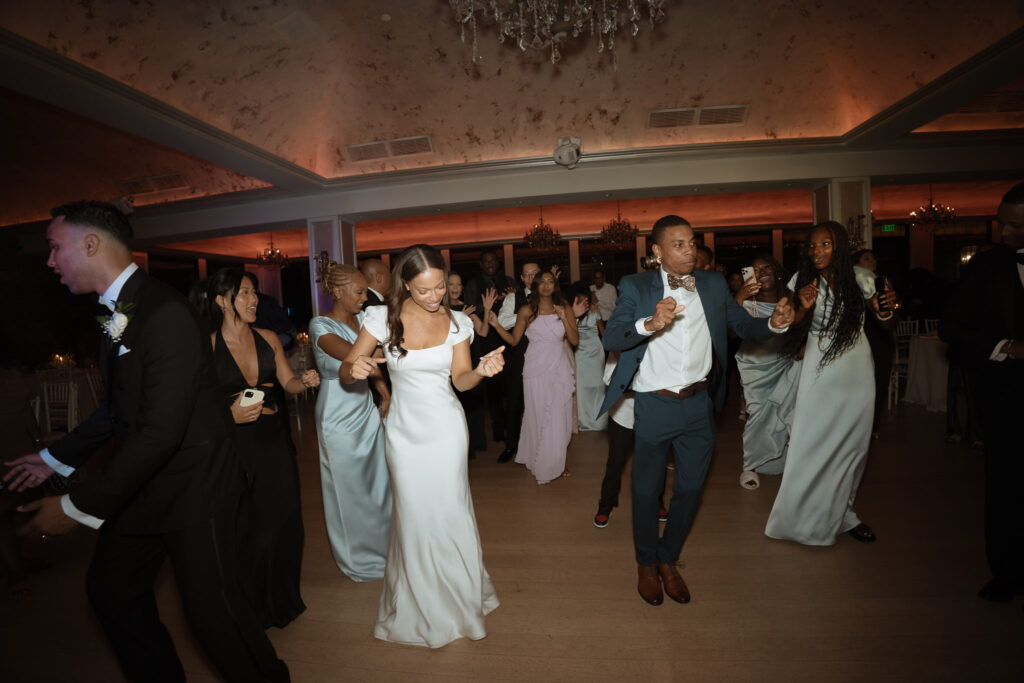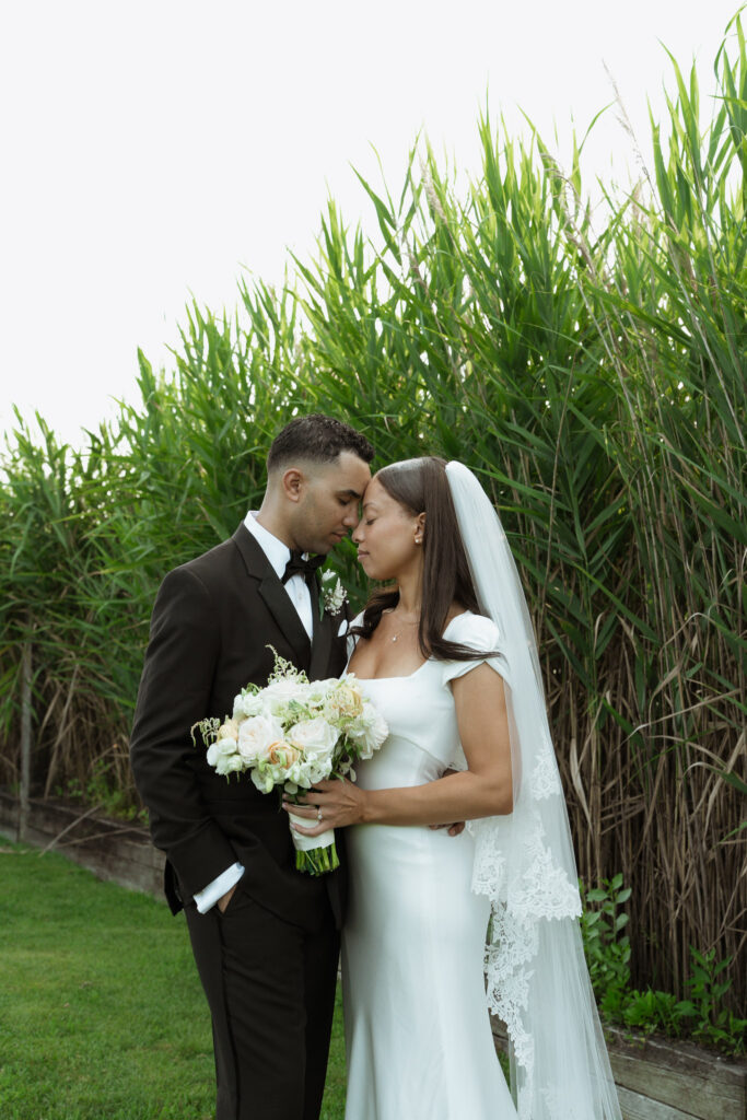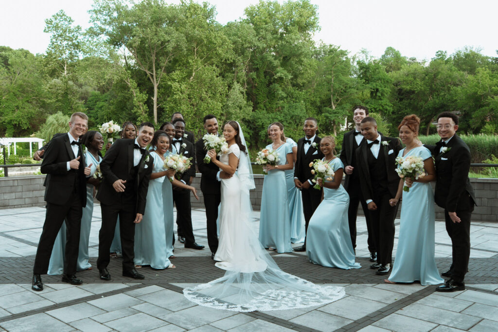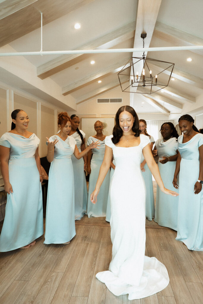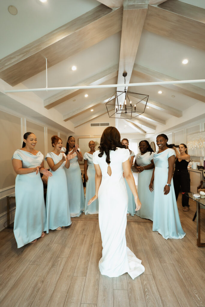 Their wedding day at The Swan Club was nothing short of magical. The venue’s effortless beauty set the stage, with lush greenery and water views creating the perfect backdrop for portraits. Their vision was inspired by a “spring garden party” feel, brought to life with soft pastels and pops of orange and yellow—colors that made the day feel both vibrant and romantic.