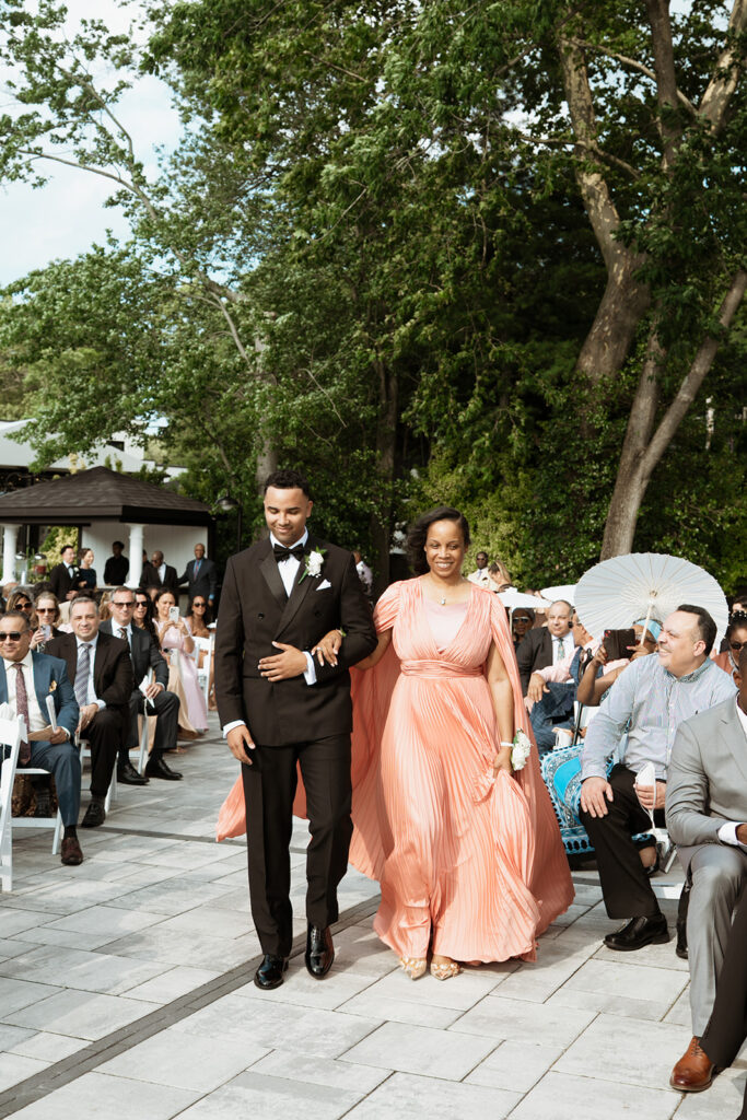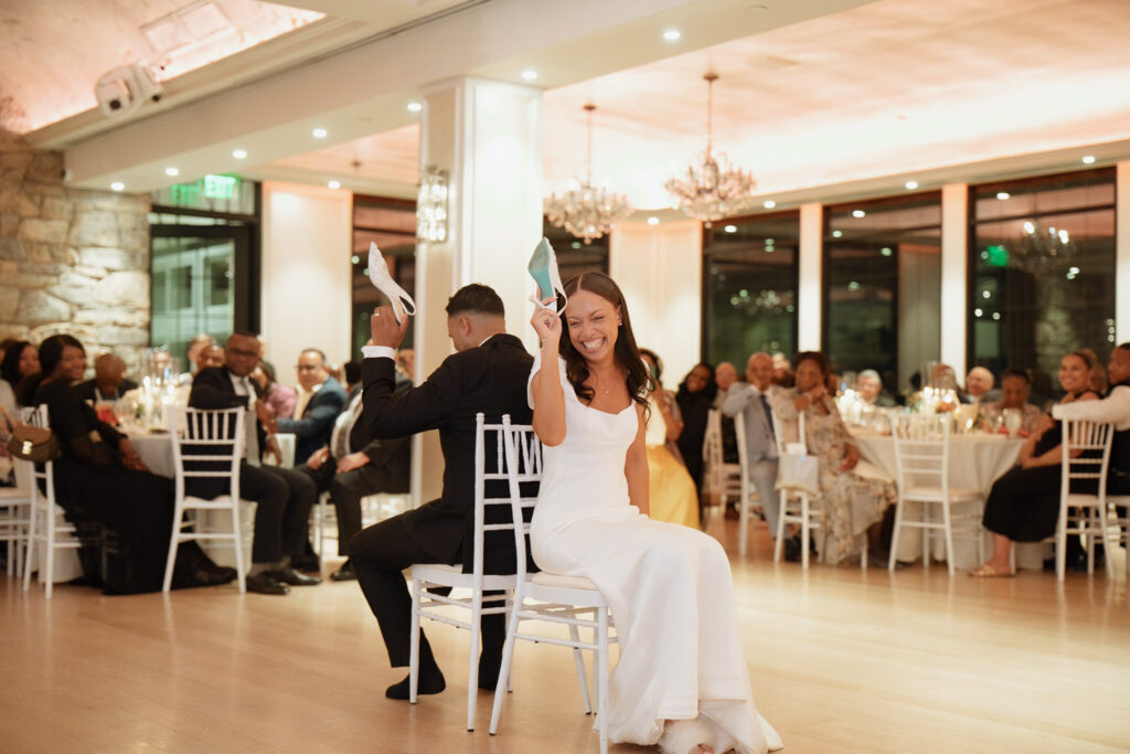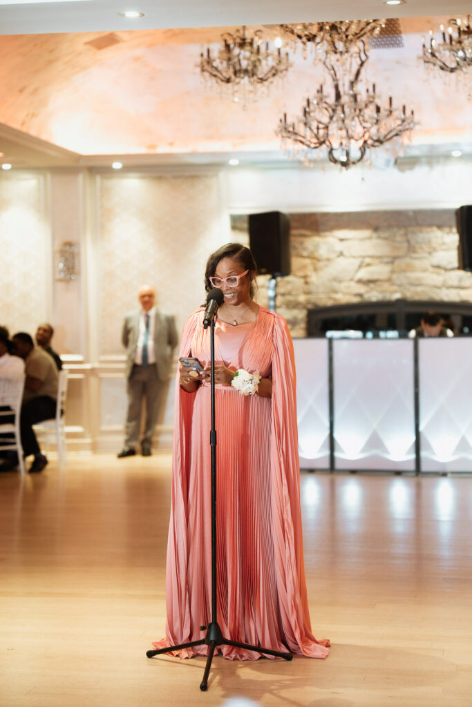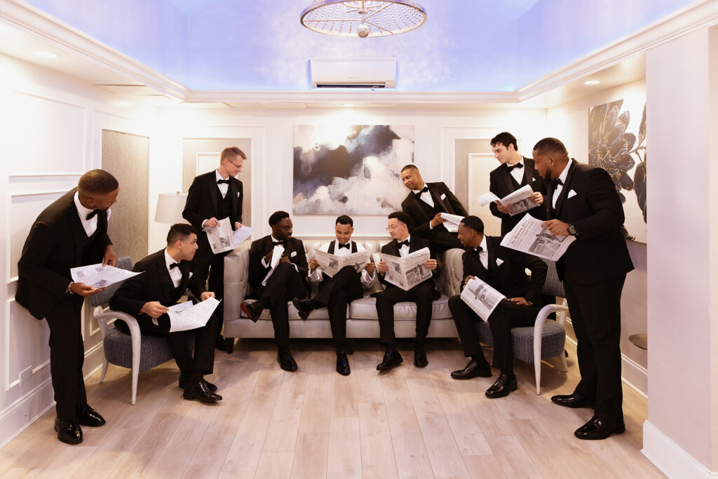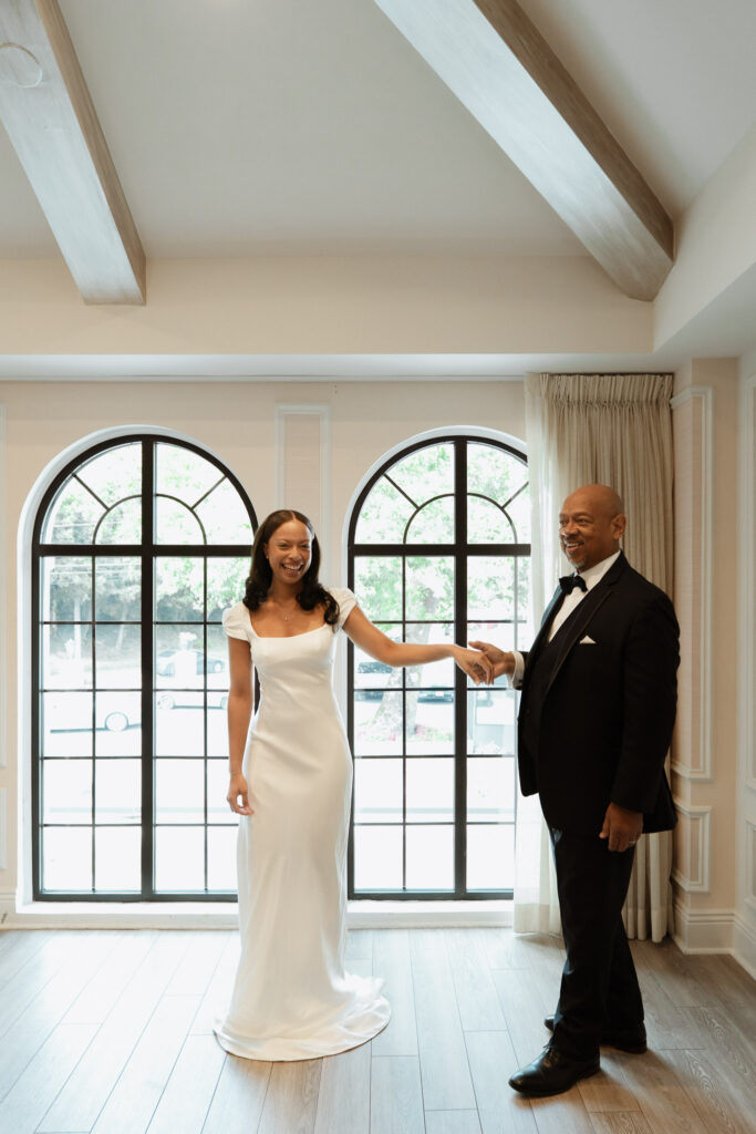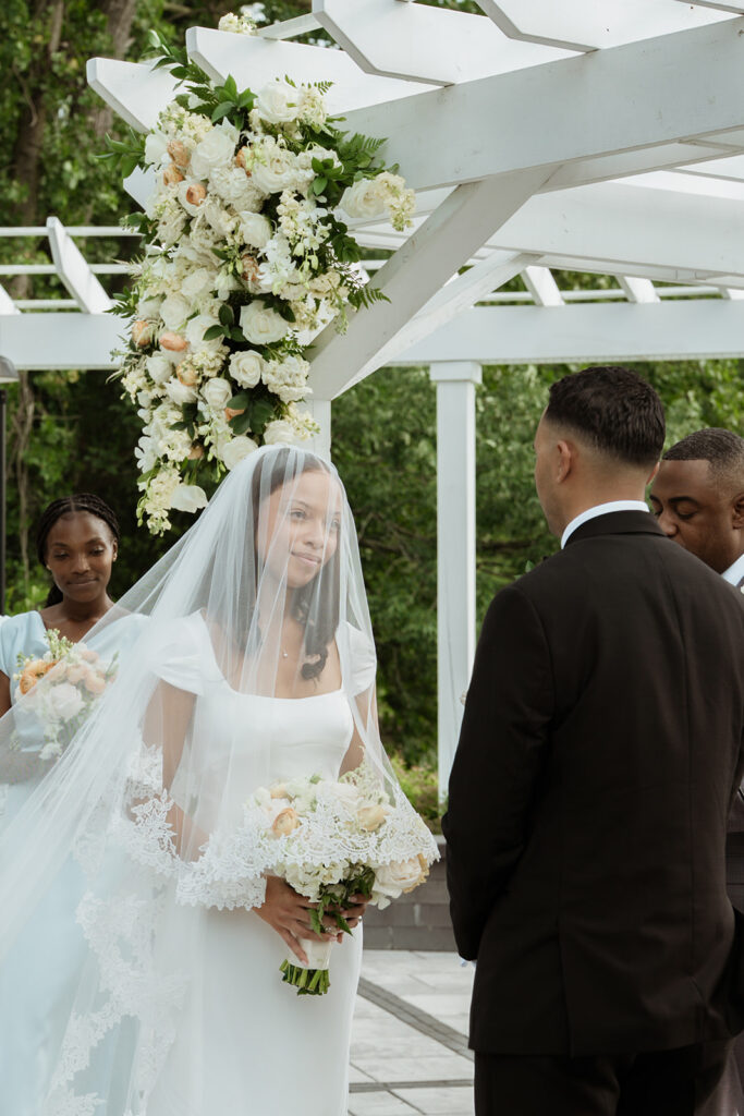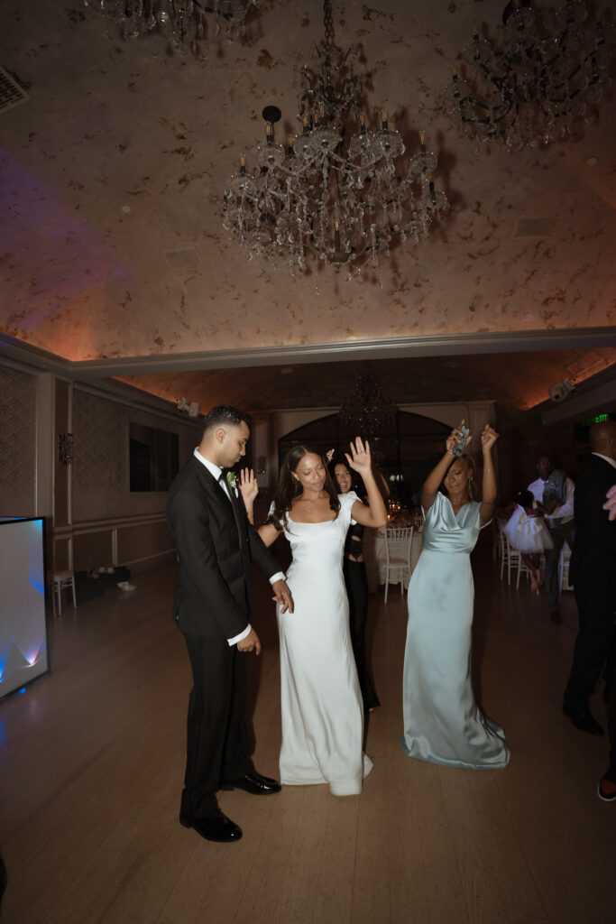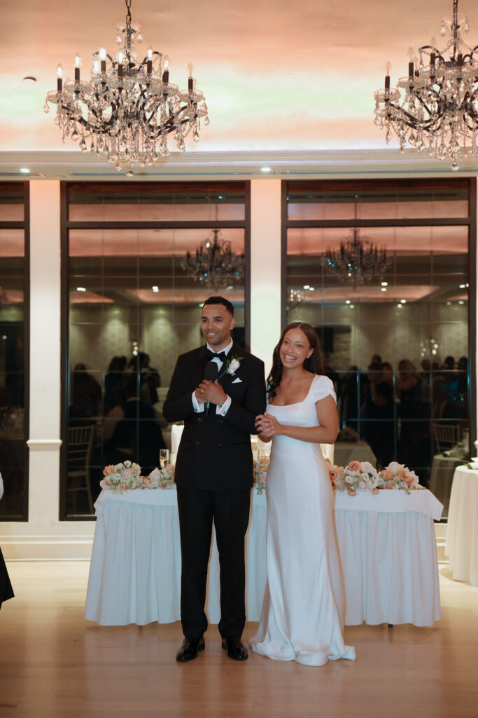 Their wedding day at The Swan Club was nothing short of magical. The venue’s effortless beauty set the stage, with lush greenery and water views creating the perfect backdrop for portraits. Their vision was inspired by a “spring garden party” feel, brought to life with soft pastels and pops of orange and yellow—colors that made the day feel both vibrant and romantic.